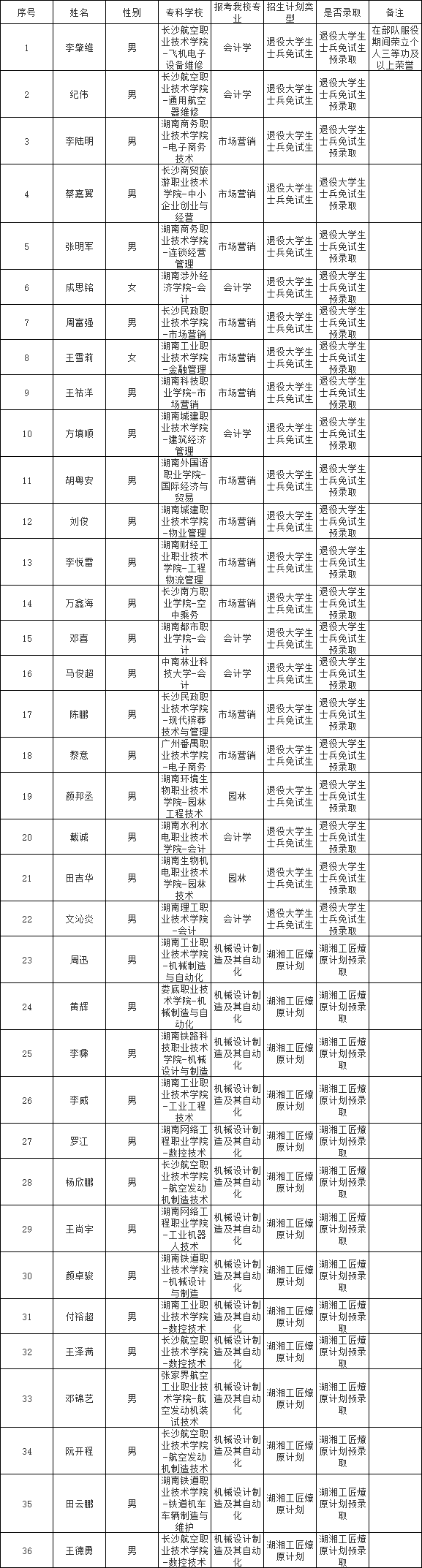 2023年中南林业科技大学专升本考试招生免试生拟录取情况公示!根据湖南省教育厅《2023年湖南省普通高等学校专升本考试招生工作实施方案》《中南林业科技大学2023年专升本招生章程》和《中南林业科技大学2023年专升本考试免试生职业技能综合测试方案》等文件精神,我校严格按有关要求组织了免试生测试、成绩复核等工作,拟录取免试生42人。其中,退役大学生士兵免试生22人、“湖湘工匠燎原计划”免试生20人,具体名单附后。根据有关工作要求,现予以公示。